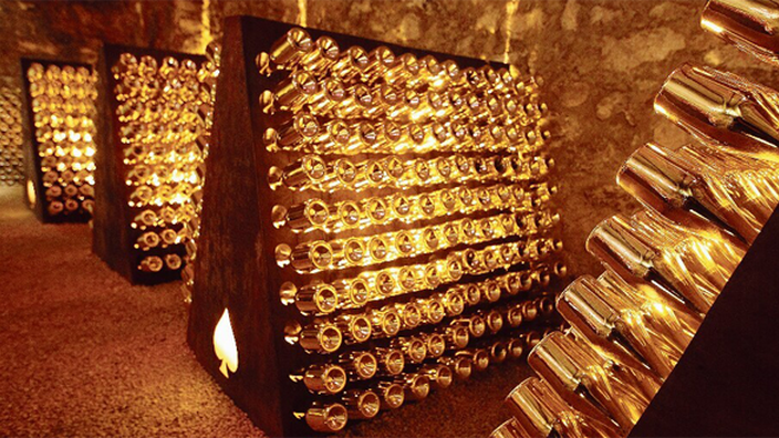 Brut Gold est la Cuvée iconique de la Maison Armand de Brignac. Il s’agit toujours d’un assemblage de 3 grands millésimes provenant des meilleures parcelles de Champagne à partir des 3 cépages champenois : Chardonnay (40%), Pinot Noir (40%) et Pinot Meunier (20%). Elu meilleur Champagne au monde par le magazine Fine Champagne.